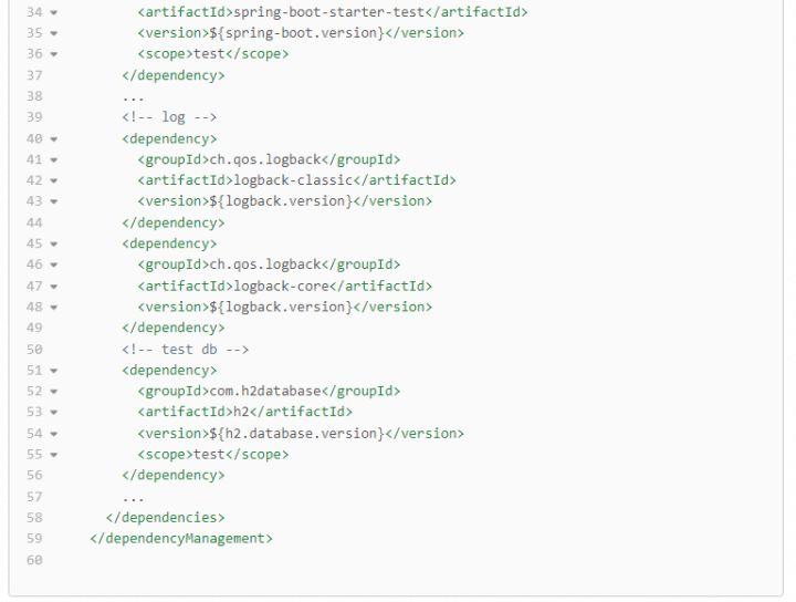 (3)把groupId相同,但是需要一组依赖共同提供功能的artifactId,配置在一起,同时将版本号抽取成变量,便于后续一组功能共同的版本升级。比如spring-boot依赖的版本抽取成了spring-boot.version。