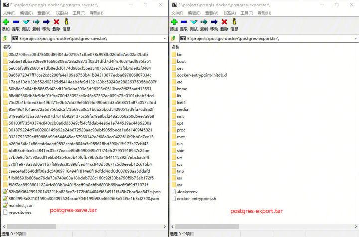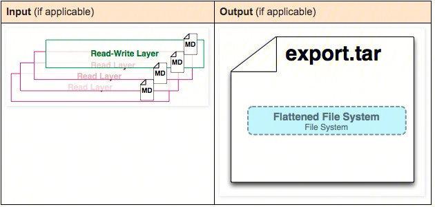 docker export命令创建一个tar文件,并且移除了元数据和不必要的层,将多个层整合成了一个层,只保存了当前统一视角看到的内容(译者注:expoxt后的容器再import到Docker中,通过docker images –tree命令只能看到一个镜像;而save后的镜像则不同,它能够看到这个镜像的历史镜像)。