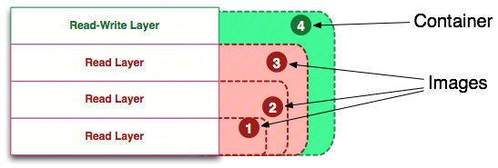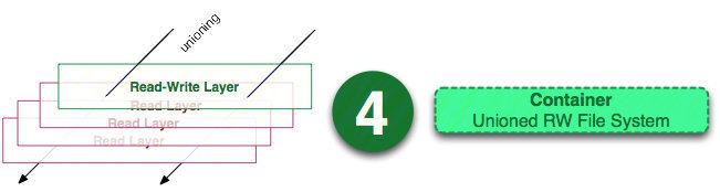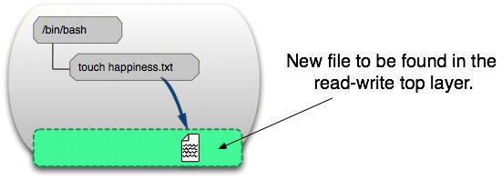 正是文件系统隔离技术使得Docker成为了一个前途无量的技术。一个容器中的进程可能会对文件进行修改、删除、创建,这些改变都将作用于可读写层(read-write layer)。下面这张图展示了这个行为。