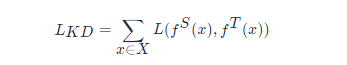 其中 L(⋅)L(⋅) 是一个用于评估教师网络和学生网络之间差异的损失函数,xx 是输入文本,XX 代表训练数据集。因此,蒸馏的关键问题在于如何定义行为函数和损失函数。