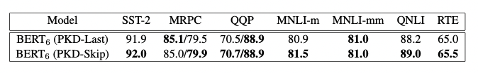 图4: PKD-Last 和 PKD-Skip 在GLUE基准上的对比