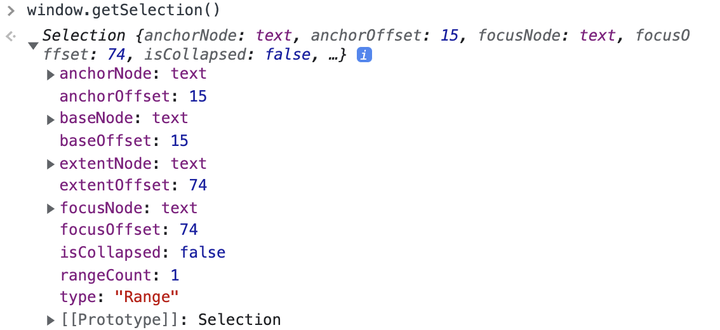 const selection = window.getSelection();