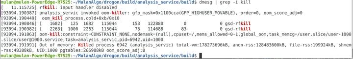 jcmd <pid> Thread.print > jstack.log #jcmd生成如果你观察到现象的时候你的JVM进程已经消失了,有概率是被linux oom_killer kill掉了,可以通过以下命令获得相关日志: