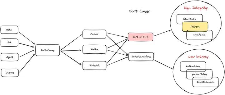 Sort 意为分拣, InLong Sort 负责将业务数据分拣写入到指定的库表中。根据不同的业务场景,如下图所示 InLong Sort 由两种引擎组成: