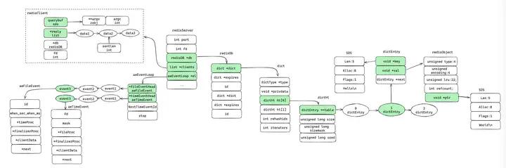} aeEventLoop;现在我们将redis核心概念的结构总结如下: