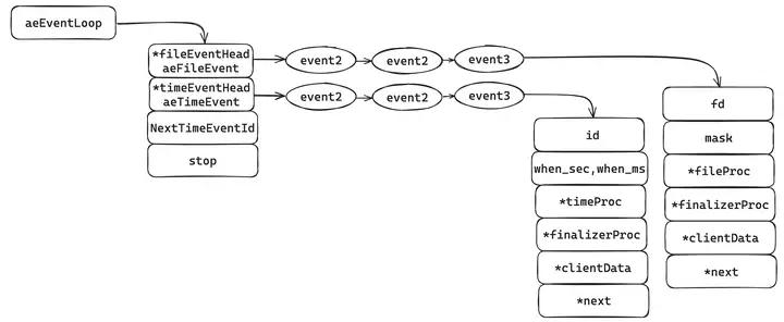 struct aeTimeEvent *next;// 下一个事件(链表存储)