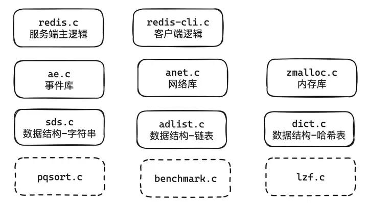 学习 Redis 源代码之前,我们需要对 Redis 代码的整体架构有一个了解,基于redis1.0源码,我们列出了主流程相关的如下源码文件。
