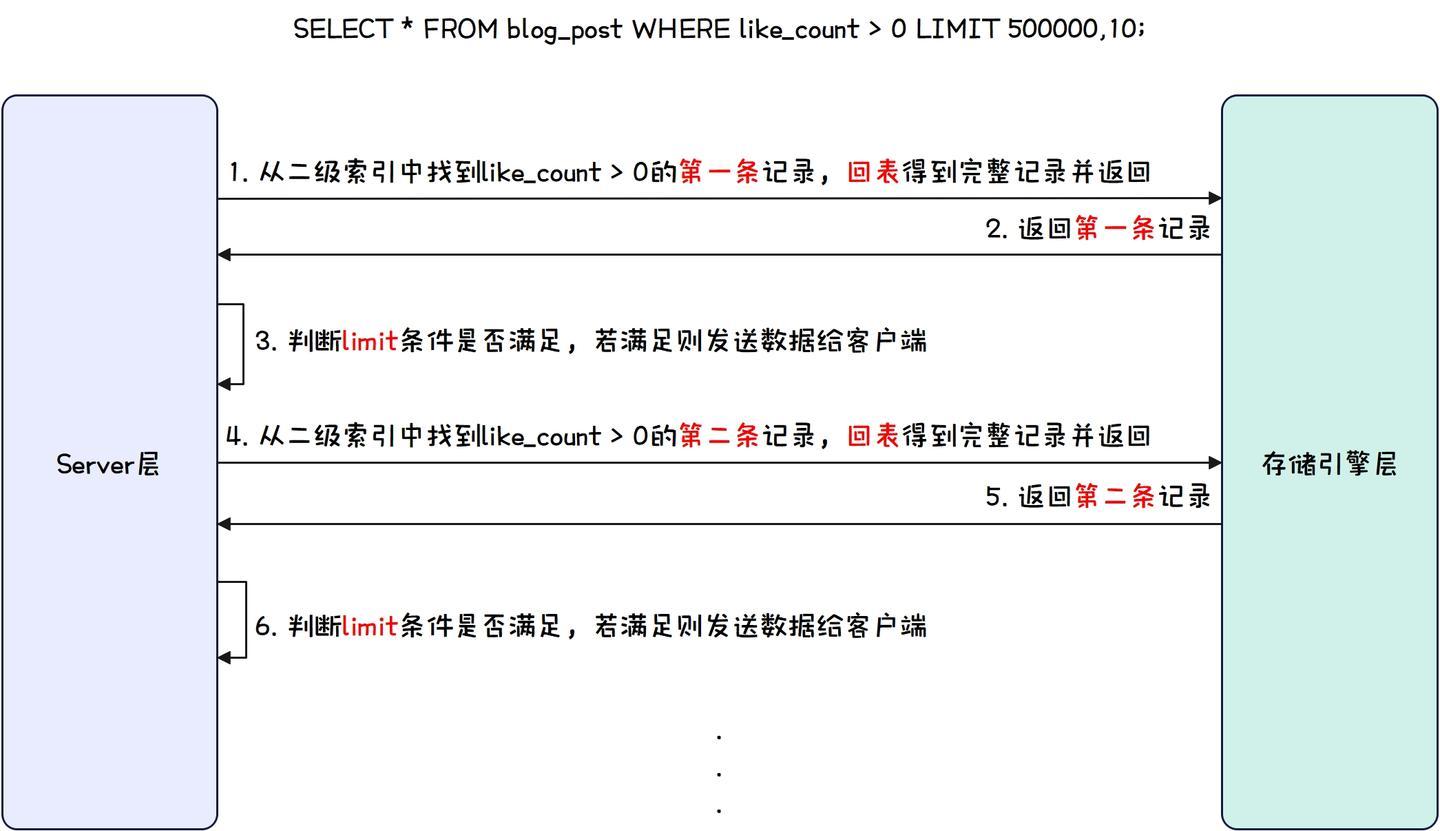 LIMIT 500000,10;上述这条SQL语句在执行时,MySQL的Server层和InnoDB存储引擎