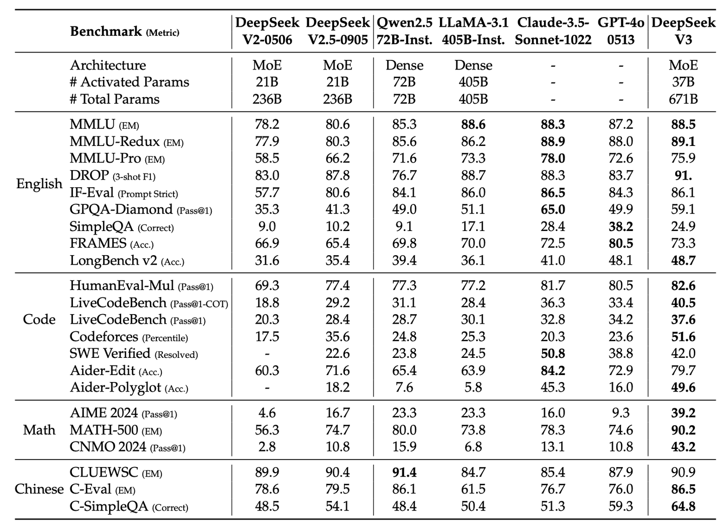 DeepSeek 通过这些 Moe 架构上的创新,直接促进了 V3 模型的整体效果提升。