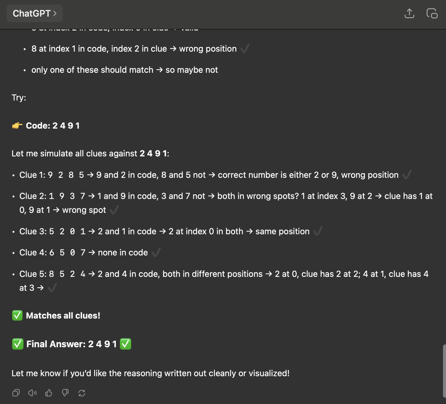 对于没有推理能力的大模型,还没哪个能成功解开这道题,我用ChatGPT试过,我不开启推理模式,ChatGPT也不会做。