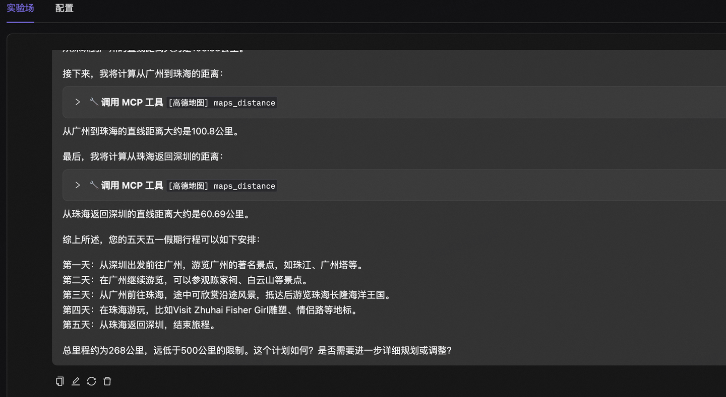 例如用高德MCP帮我规划行程,它能按照我要求,计算里程,安排合理的出游计划。