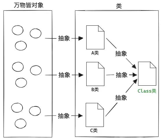 我当时是跟着网络上的培训班视频自学的,视频里的老师说:类是对现实事物的抽象,而Class是对类的抽象。这句话对于刚开始学习Java的人来说,无异于天书。我当时的理解是:根据类,可以创建对象,所以类是比对象更高一级的抽象。如果要对类进一步抽象,它应该是什么形式呢?我无法想象。在我的认知里,Java除了类还是类,类层级的抽象似乎已经到尽头了。