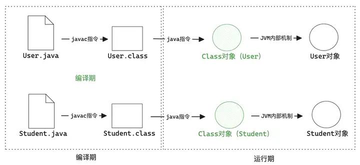 也就是说,我们一直以为new User()的步骤是 User类 => User对象,但实际上是 User类 => User类的Class对象 => User对象。