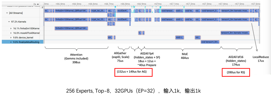 采用网平团队优化的TRMT通信库,能够很好地适配int4量化模型,下面是优化前后的对比分析。