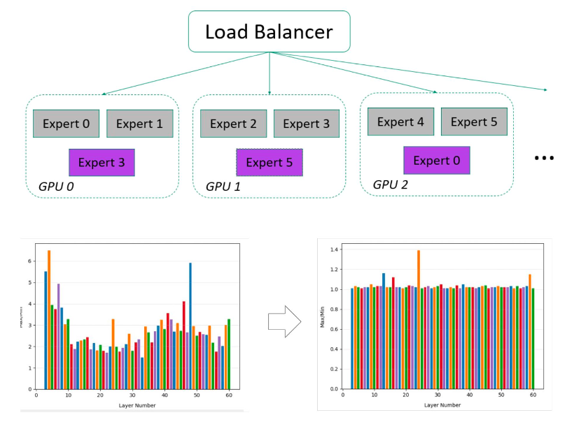 ● 不同layer的热点专家分布不同,各layer的负载均衡可独立调度管理