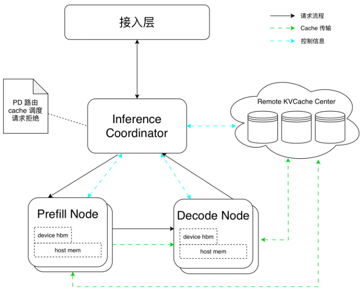 由于Prefill和Decode采用不同的并行策略,PD分离需要做相应适配,主要考虑两个点:负载均衡以及KV Cache传输。