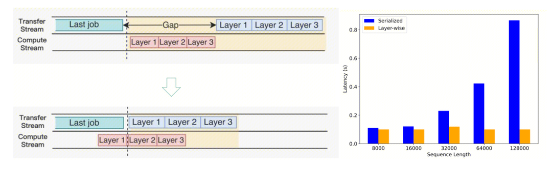 ● 层前向计算与层 KV Cache 传输 overlap,有效降低长seqlen 场景 cache 传输时耗
