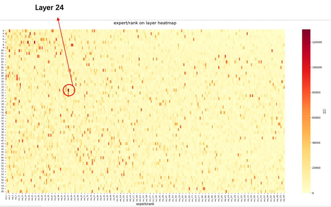 ● 部分layer存在明显热点专家,热点专家激活的次数可能是非热点专家的5倍以上,导致EP并行存在某个rank上计算耗时较长,其他rank需等待的局面