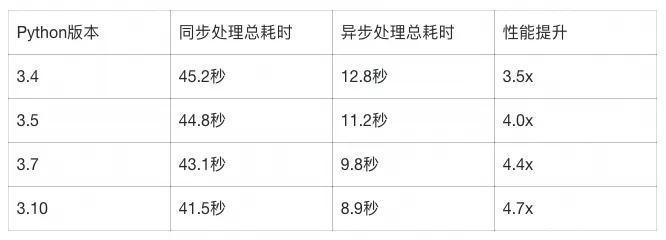 asyncio.run(main())异步性能基准测试: