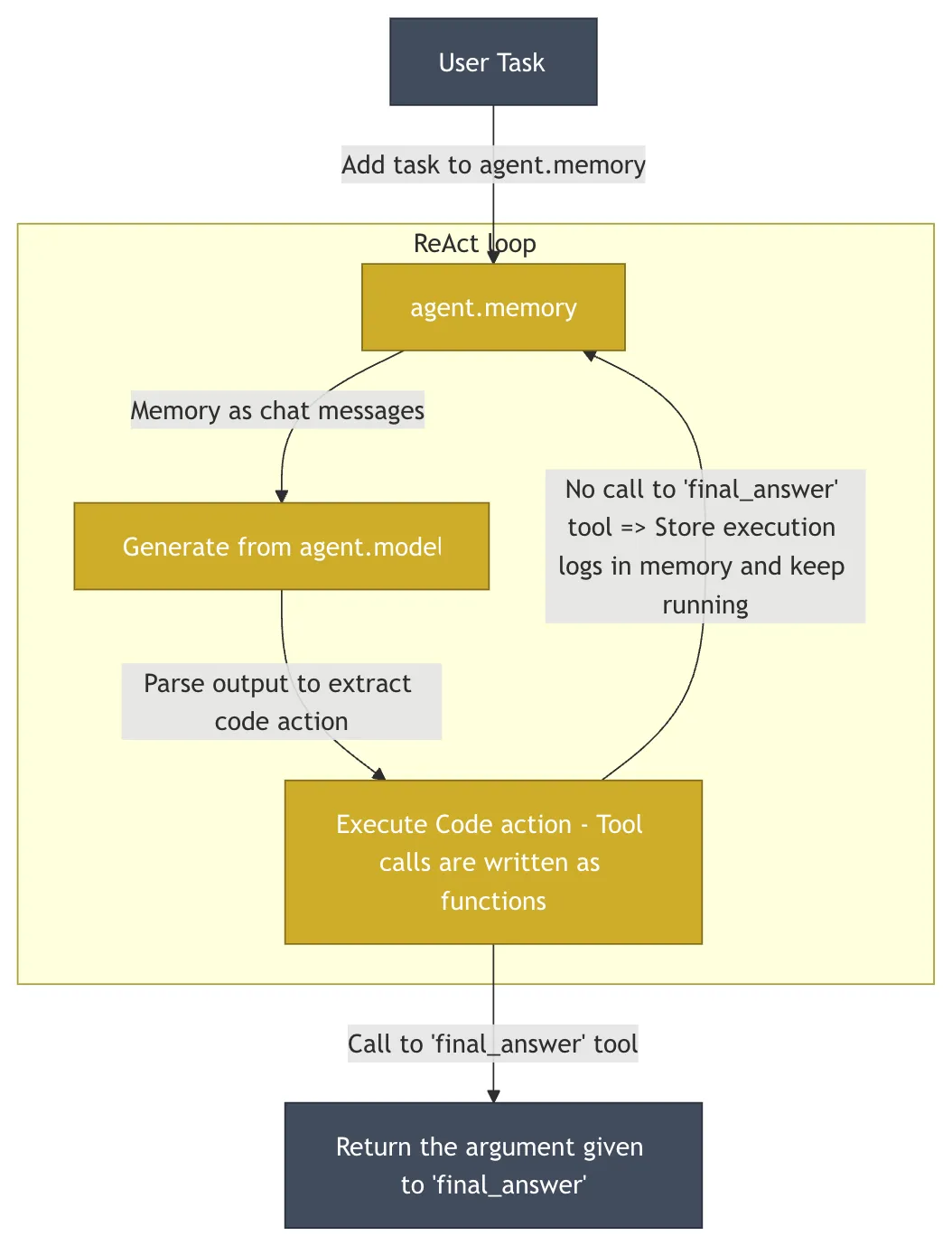 smolagents 的主要方法是代码智能体 (CodeAgent)。这与其他框架主要依赖JSON格式来定义行为的方式形成了鲜明对比。