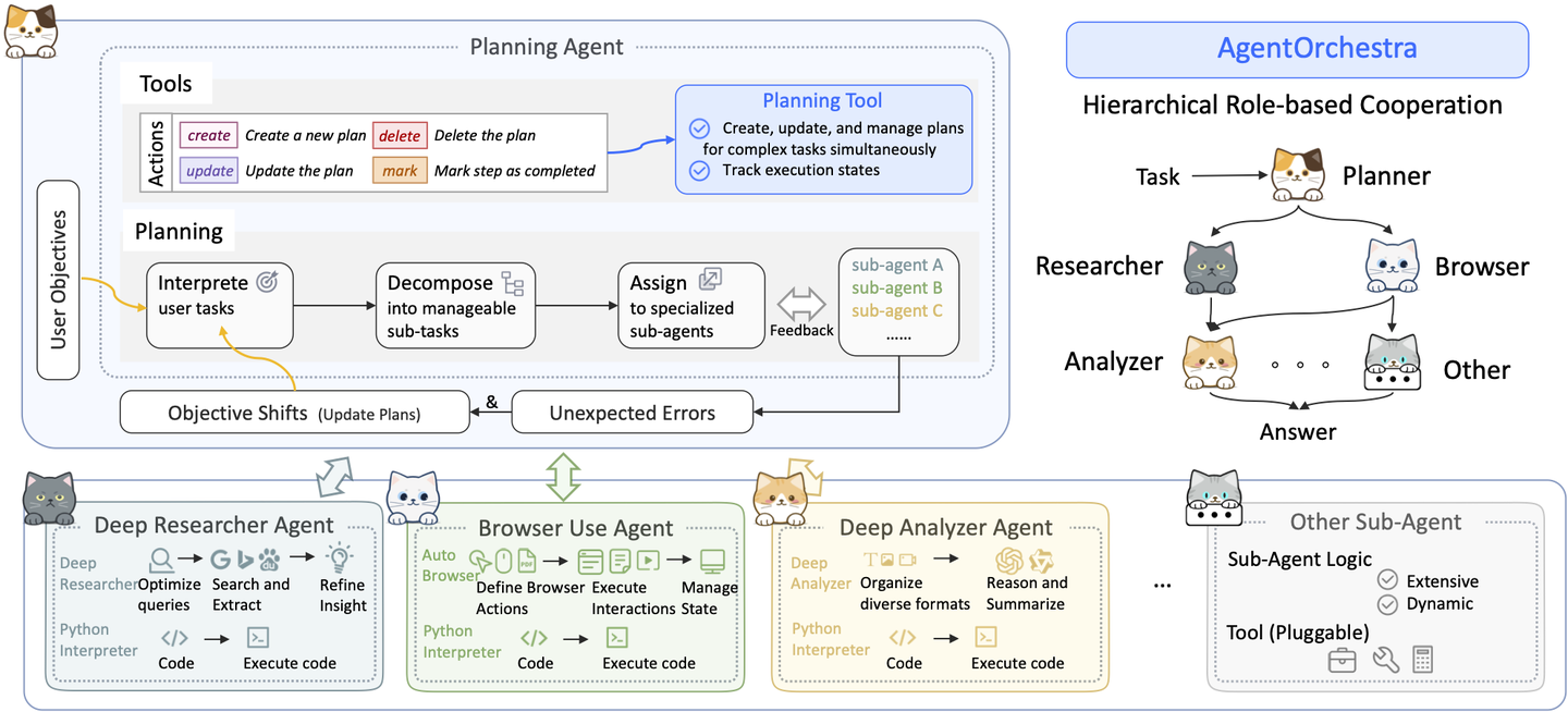 简单来说,顶层规划智能体就像一个项目经理,它制定蓝图、分配资源,并确保团队成员(即下层智能体)步调一致地工作。