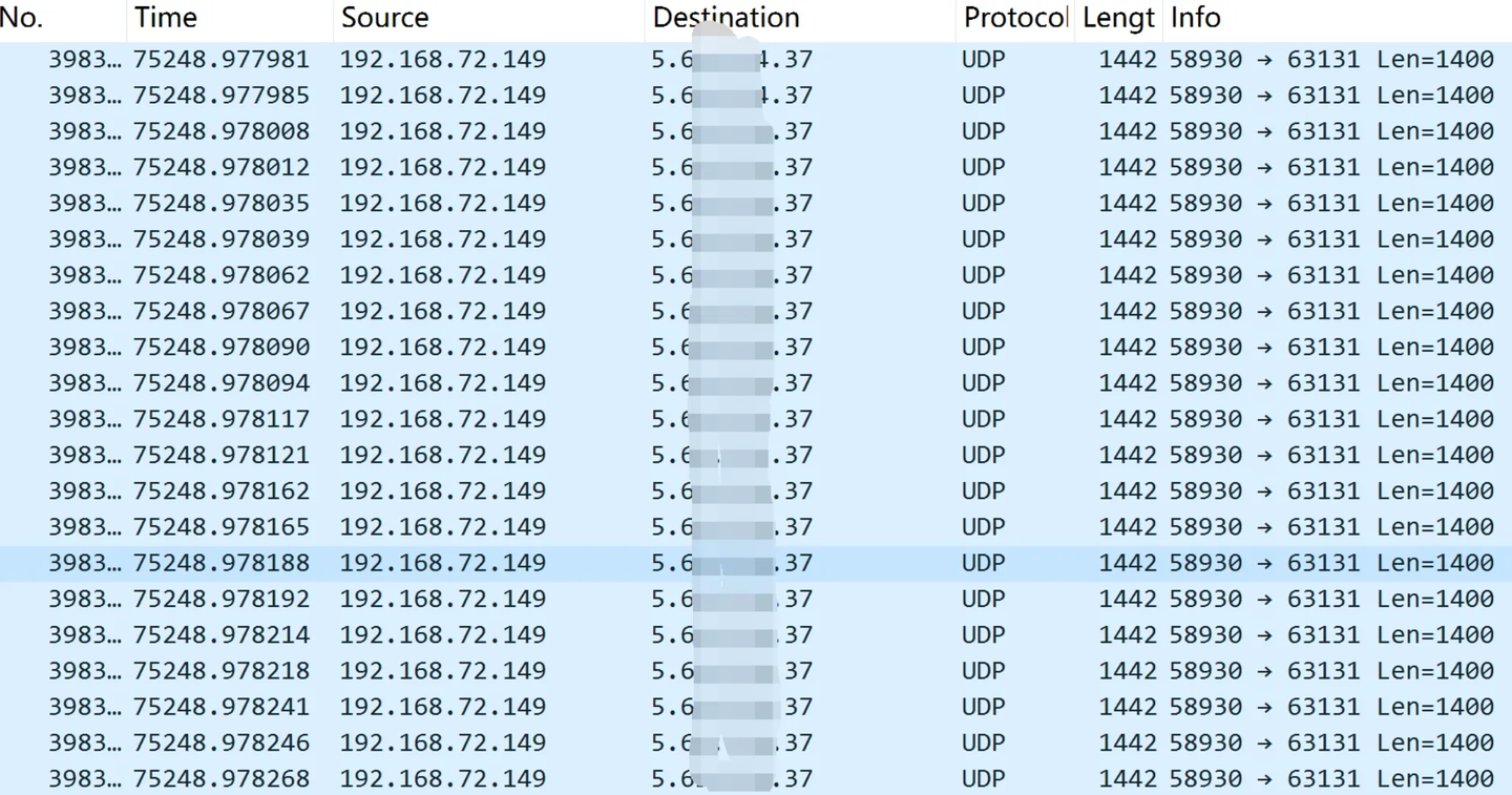 僵尸样本按照该指令发出的DDoS攻击包为: