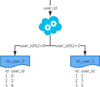 注:写入时,基因法生成user_id,如图。关于xbit基因,例如要分8张表,23=8,故x取3,即3bit基因。根据user_id查询时可直接取模路由到对应的分库或分表。根据user_name查询时,先通过user_name_code生成函数生成user_name_code再对其取模路由到对应的分库或分表。id生成常用snowflake算法。