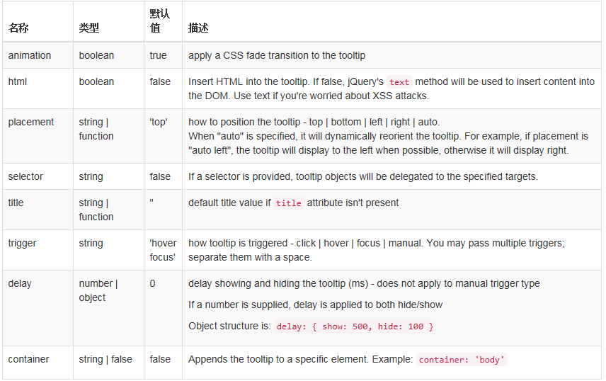受到 Jason Frame 开发的 jQuery.tipsy 插件的启发,Bootstrap 才把这个工具提示插件做的更好,而且此插件不依赖图片,只是使用 CSS3 来实现动画效果,并使用 data 属性存储标题。