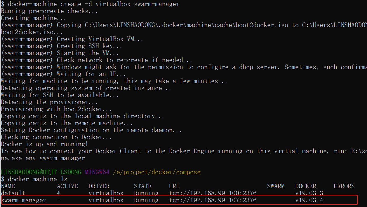 $ docker-machine create -d virtualbox swarm-manager