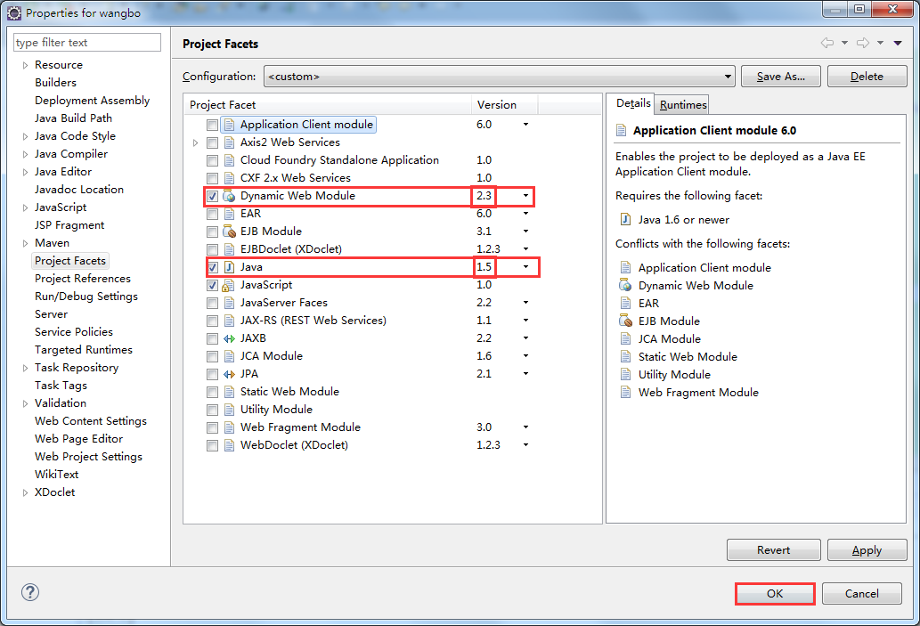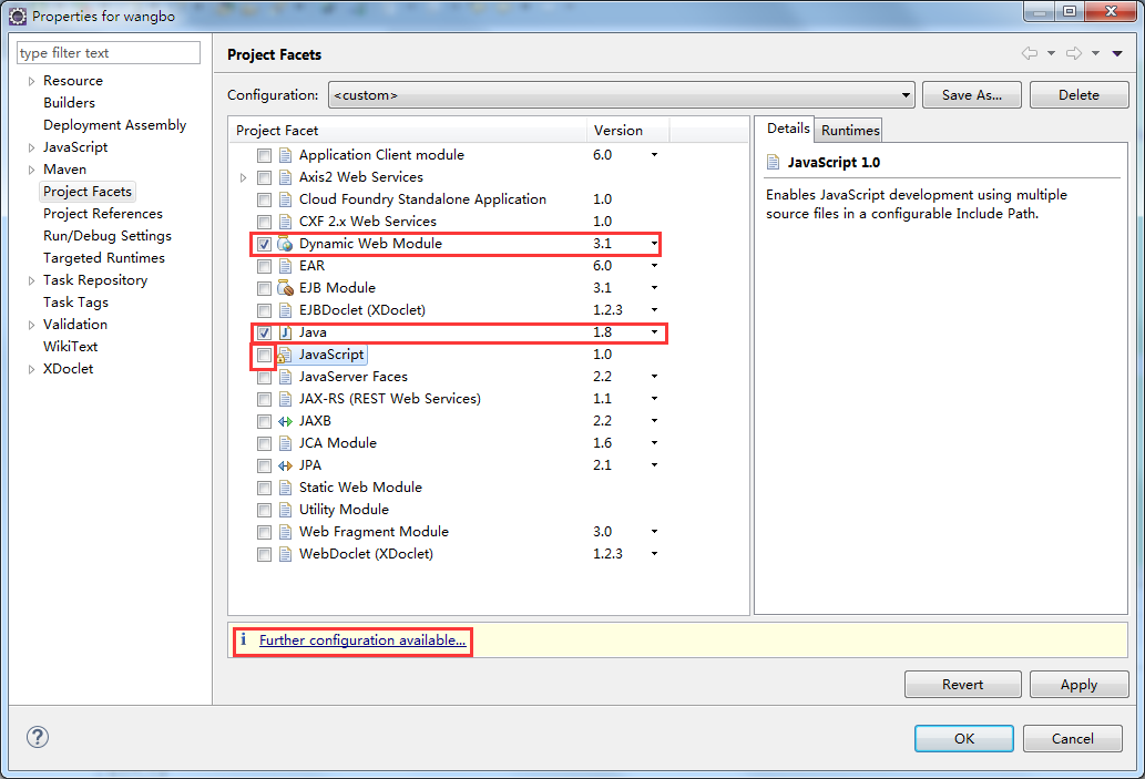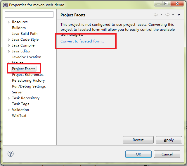 在左侧选择 Project Facets,单击右侧的 Convert faceted from