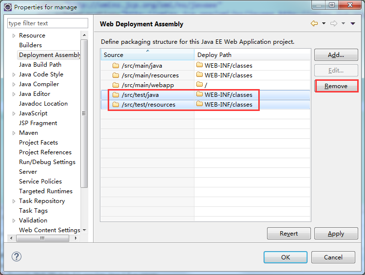 (1)删除test的两项,因为test是测试使用,并不需要部署。