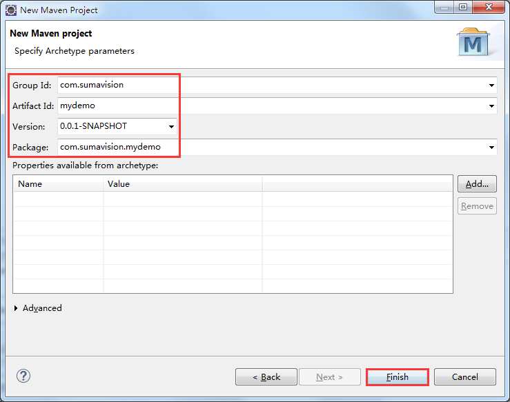 4、 Group Id 中输入项目的基本包名。