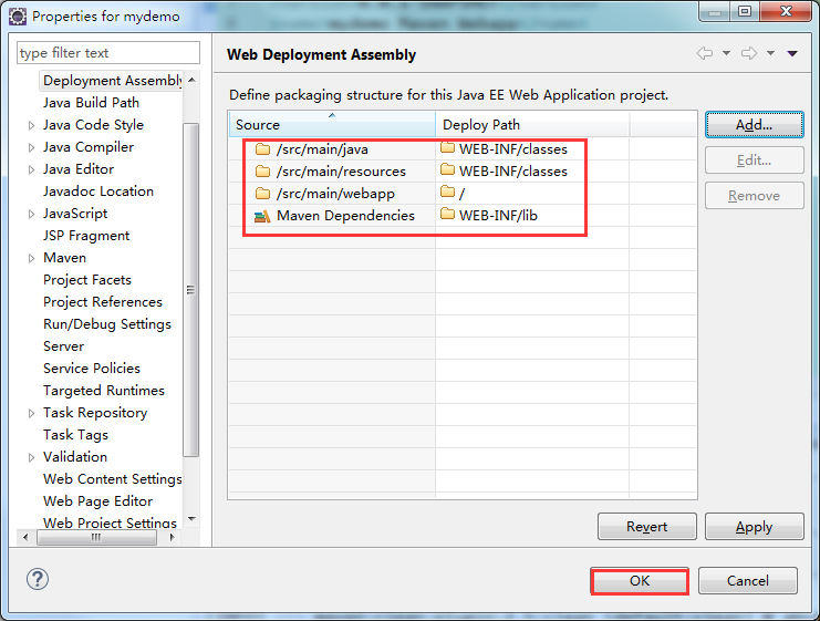 修改 Content directory(内容目录) 的值 WebContent 为 src/main/webapp ,单击OK,然后回到上一步窗口直接点击OK
