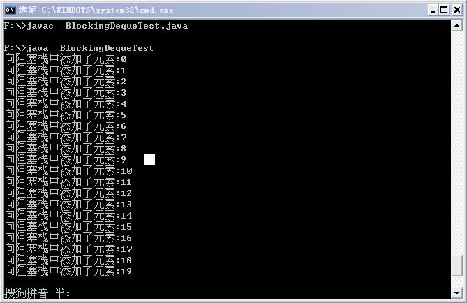 System.out.println("向阻塞栈中添加了元素:" + i);