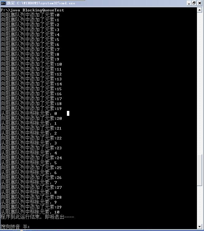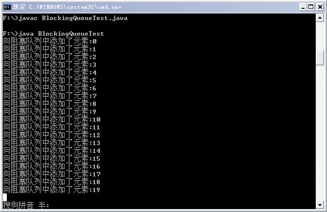 System.out.println("向阻塞队列中添加了元素:" + i);