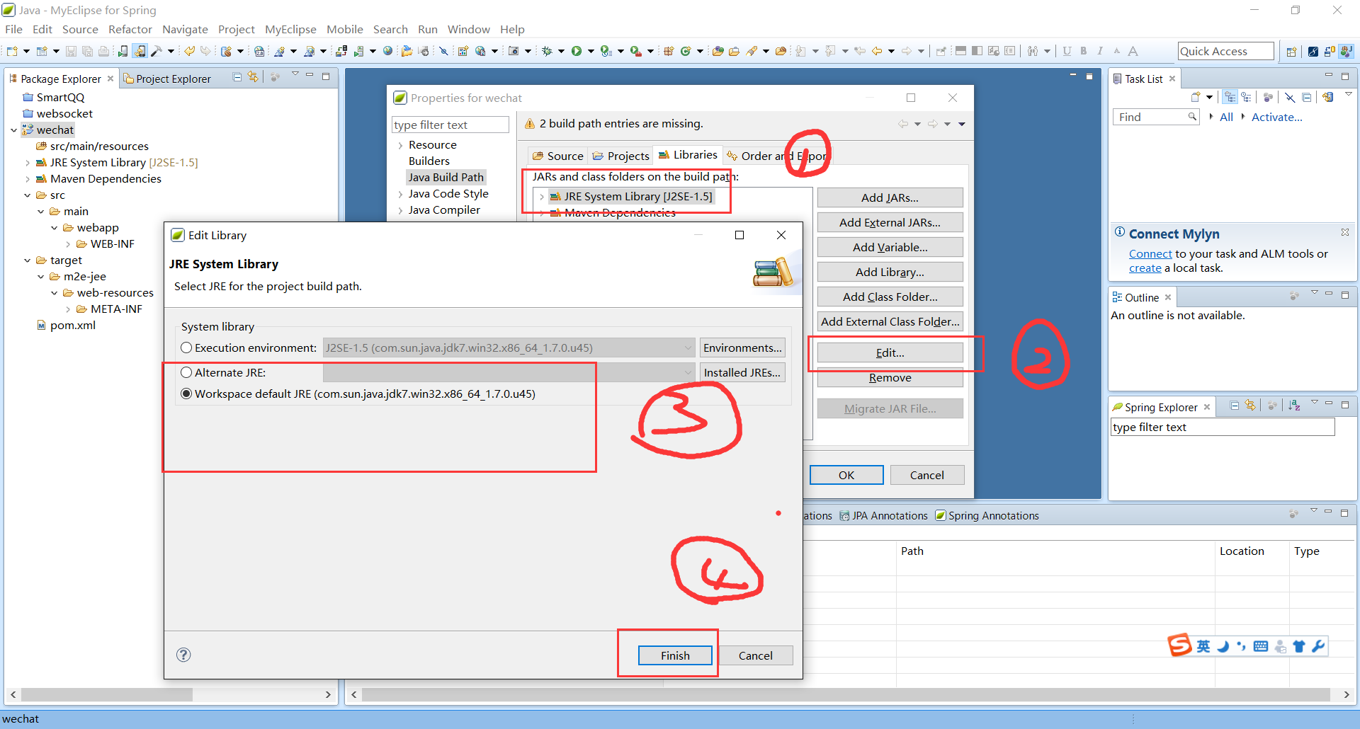 项目右键——>Build Path——>Libraries 修改 Jar 依赖版本,大致流程如下图: