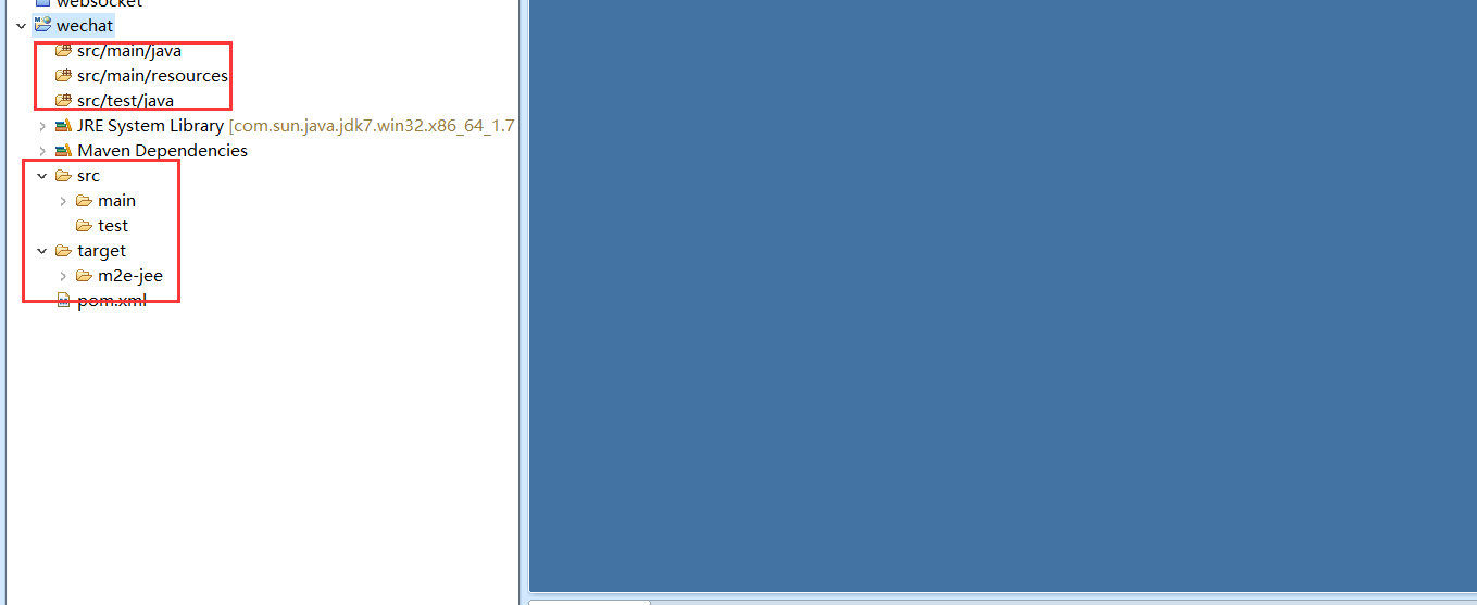 这个和我们平时开发中看到的项目目录结构完全不是一个样啊,难道是我们的 Maven 项目建立错了么,毫无疑问我们的项目建立是没有错的,下面我们来进行项目配置,达到我们想要的目录结构: