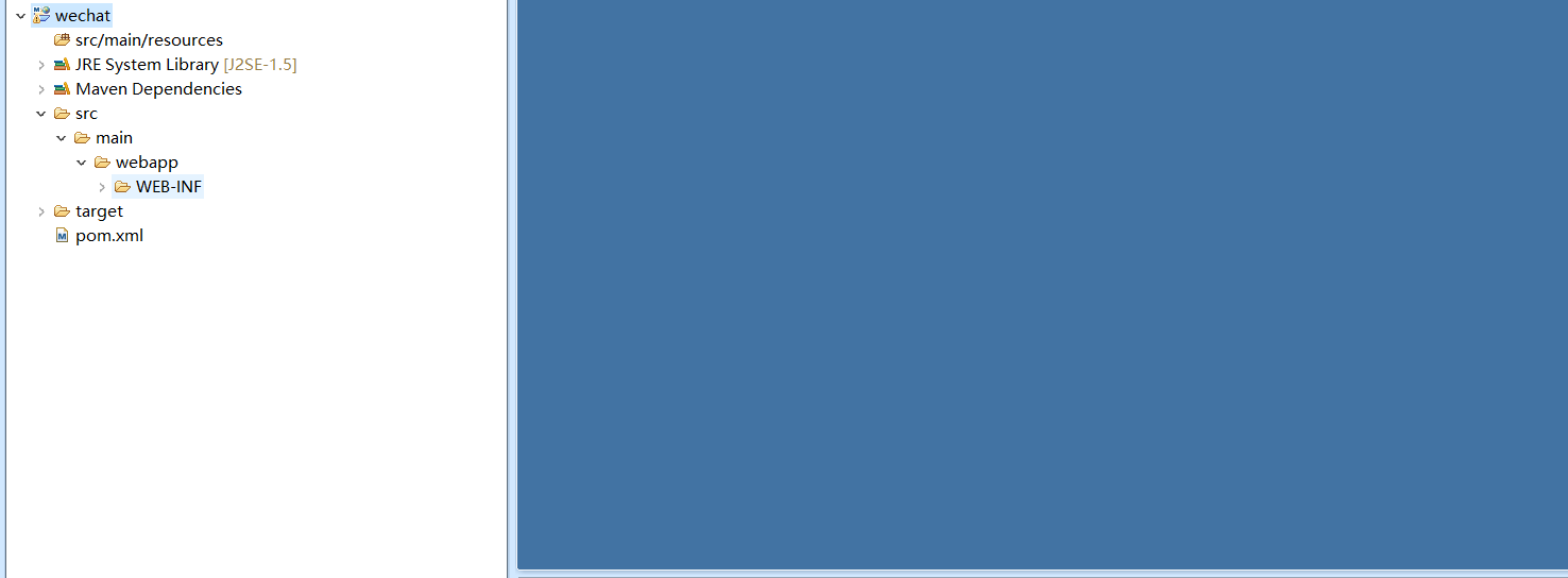 可能有人会问前面已经建立了 Maven 项目,为啥还会有 Maven 项目配置这一项,我想当问这个问题的人建立过项目并且打开项目目录的时候就明白这一步的重要意义了,先来看看我们新建的项目的目录结构如下: