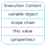 当然,根据不同的实现,这个对象可以包含任意其他的属性(上图中的<properties>部分)。每个上下文对象所需要包含的有变量对象,作用域链以及this.这三个属性在不同类型的上下文对象中意义可能不同。