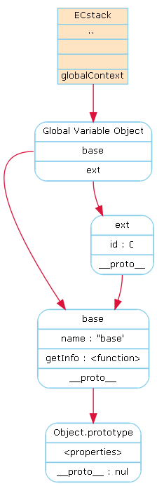 结合执行器上下文栈和原型对象,我们可以得到下列的示意图: