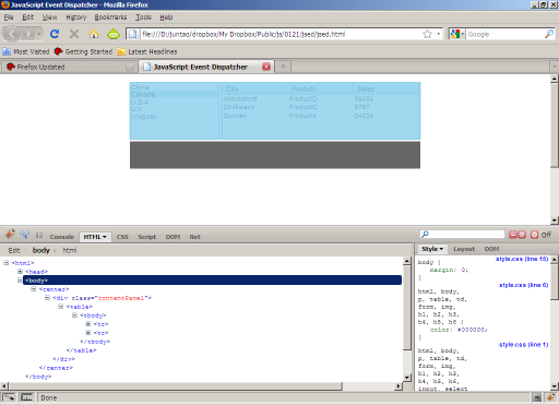 在FireBug处于“查看”状态时,通过鼠标在页面上移动,页面的一部分区域会高亮,点击此高亮区域即进入查看状态,注意此时FireBug的HTML查看窗口中的内容:它会高亮显示当前选中区域的HTML代码,而且你可以动态的编辑这些标签的属性和样式,对于页面大小,风格的微调十分有用。