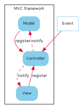 在MVC模型中,应用被分为三个功能块,M表示模型(Model),通常为后台的数据;V表示视图(View),表示数据的展现,如Web页面或者2D库渲染出来的其他UI组件,而C表示控制器(Controller),负责逻辑部分的控制,协调模型和视图的关系。使用这个模型,可以降低个层次之间的耦合度,使得软件可以较大程度上得到重用。