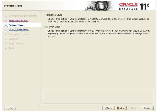 Accept the "Server Class" option by clicking the "Next" button
