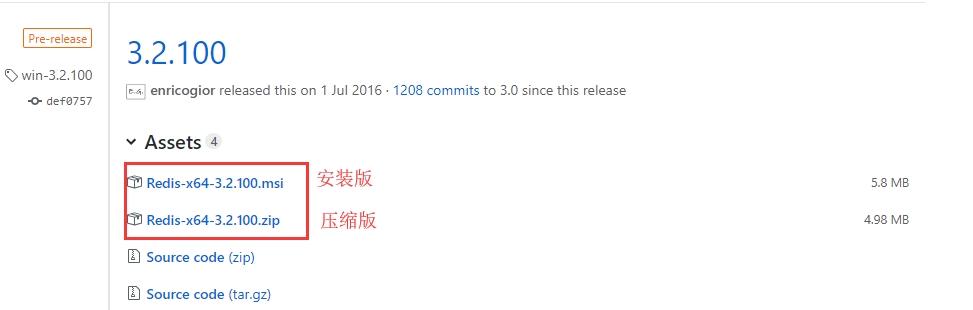 2、在下载网页中,找到最后发行的版本(此处是3.2.100)。找到Redis-x64-3.2.100.msi和Redis-x64-3.2.100.zip,点击下载(此处下载msi版本)。
