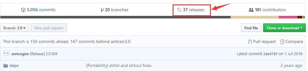 也可以在以下GitHub链接找到。链接:https://github.com/MSOpenTech/redis。打开网站后,找到Release,点击前往下载页面。