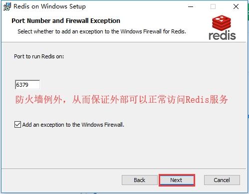 6、端口号可保持默认的6379,并选择防火墙例外,从而保证外部可以正常访问Redis服务。