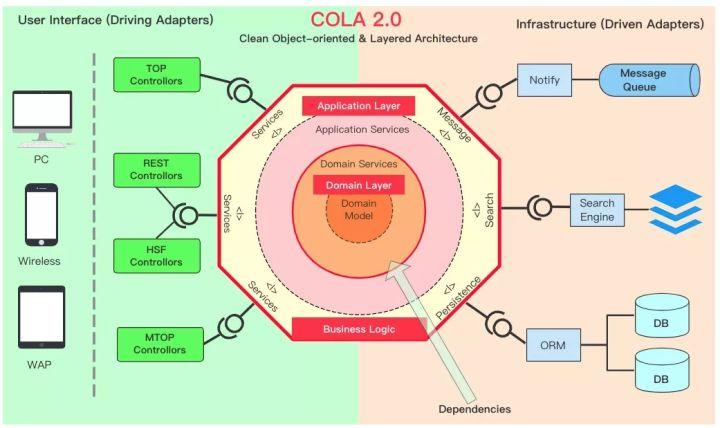 一方面 COLA 是一种架构思想,是整合了洋葱圈架构、适配器架构、DDD、整洁架构、TMF 等架构思想的一种应用架构。