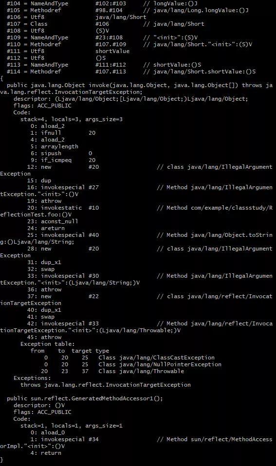 javap -c -v -p -l GeneratedMethodAccessor1.class