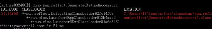 }this.numInvocations 的默认值是 0,而 ReflectionFactory.inflationThreshold() 默认是 15,当大于 15 的时候会通过 ASM 技术动态生成 GeneratedMethodAccessor1 类来调用 invoke 方法,但是,因为是动态生成的,我们怎么才能看到这个类实际长什么样子呢?