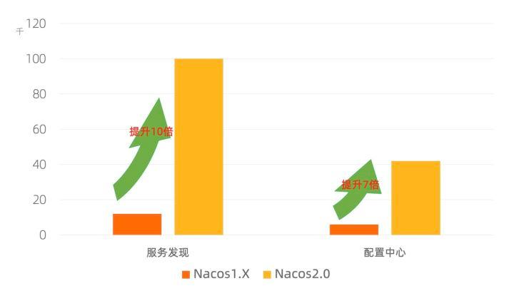 针对服务发现场景,Nacos2.0能够在10W级规模下,稳定运行;相比Nacos1.X版本的1.2W规模,提升约10倍。